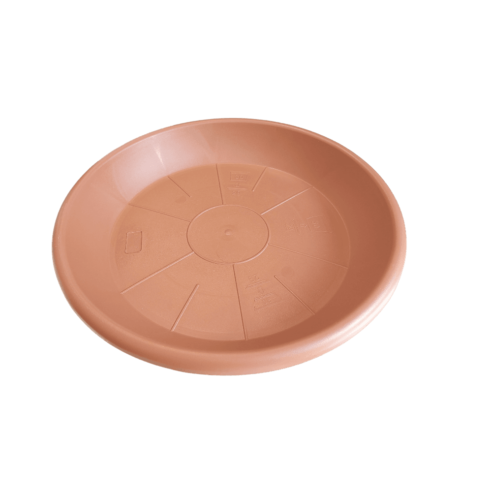 A 28 cm-es Capri alátét tökéletes választás a nagyobb növénycserepekhez, biztosítva a védelmet a bútorok és egyéb felületek számára.